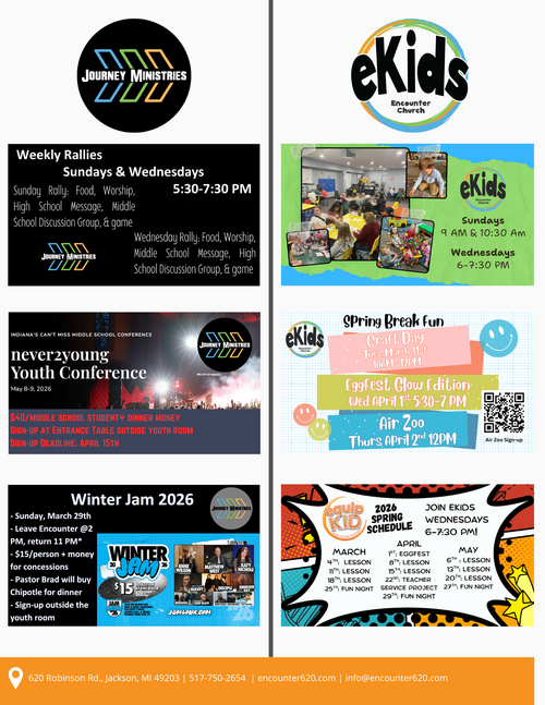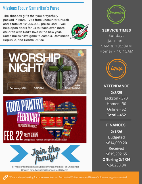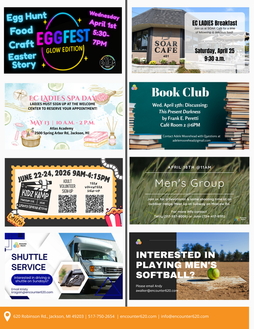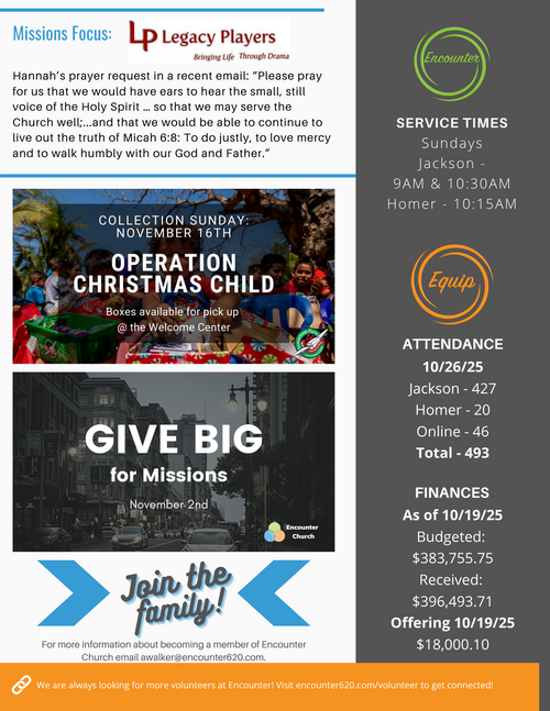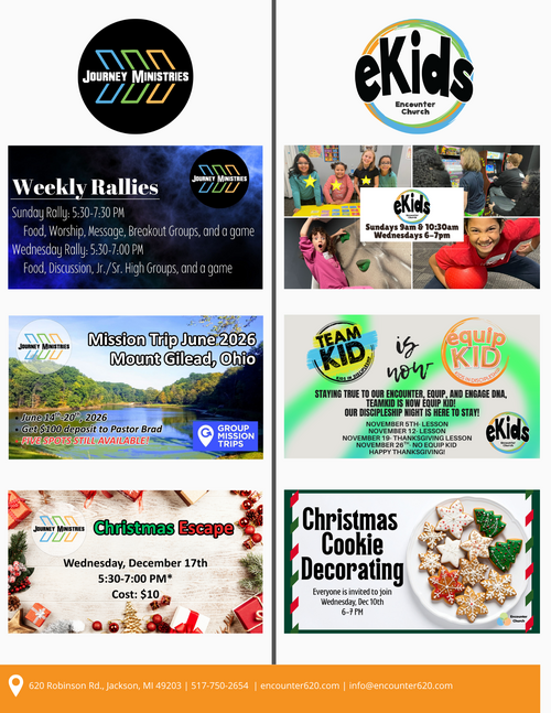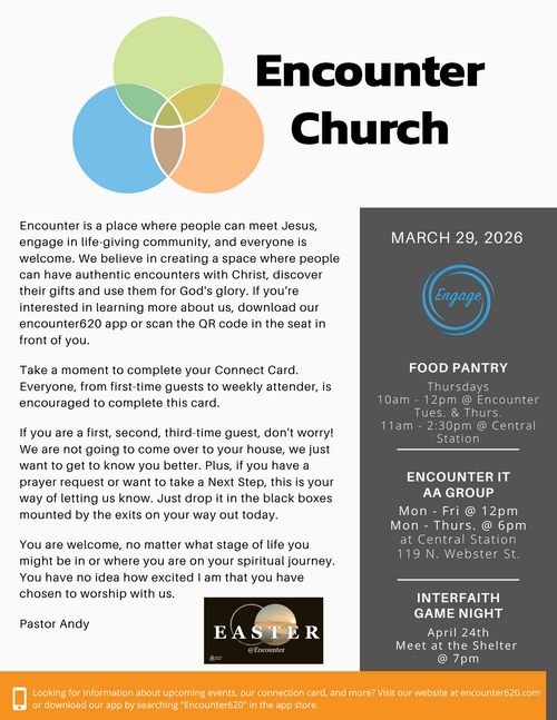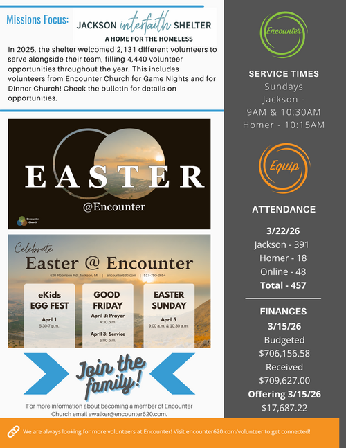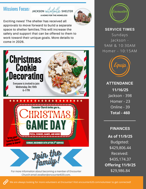 Thank you for your interest in Encounter Church. If you would like to receive email newsletters to keep up with everything going on at Encounter Church, please fill out the form below to be added to our email list.