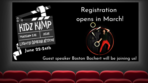 Kidz Kamp is a day camp for kids going into 1st-5th grade. Kids will experience 15 different classes and activities to learn new skills, make new friends and hear about Jesus. Our guest speaker this year is Boston Bachert!