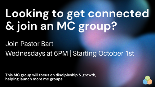 Looking to get connected & join an MC group? Join Pastor Bart to focus on discipleship & growth.