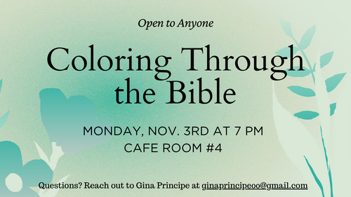 This is a relaxed, conversation-based group where we dive into a different book of the Bible each week - while coloring artwork that reflects its stories and teachings.